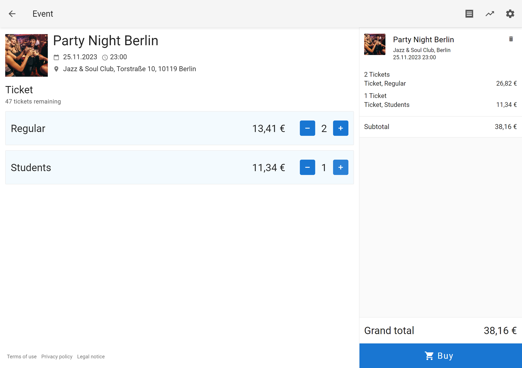 We know that every event is unique. EVENTIM.Light provides you with the tools you need to stand out in a competitive market. Whether it's an exclusive party, a theme night or a karaoke night, our self-management system adapts to your needs.