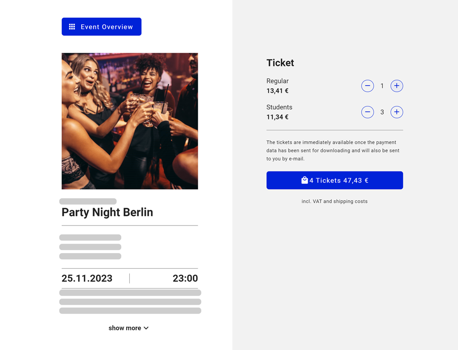- Individualise your ticket shop: Create a professional ticket shop in the design of your website - no problem with our tool.