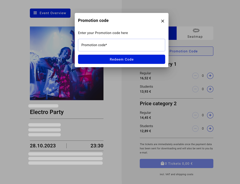 Benefit from the possibilities of selling through your own website via an iFrame code or a link. With EVENTIM.Light you can also create your own ticketshop and sell your tickets on it, on the reference portal for live entertainment, entradas.com and at the box office on the day of your event.