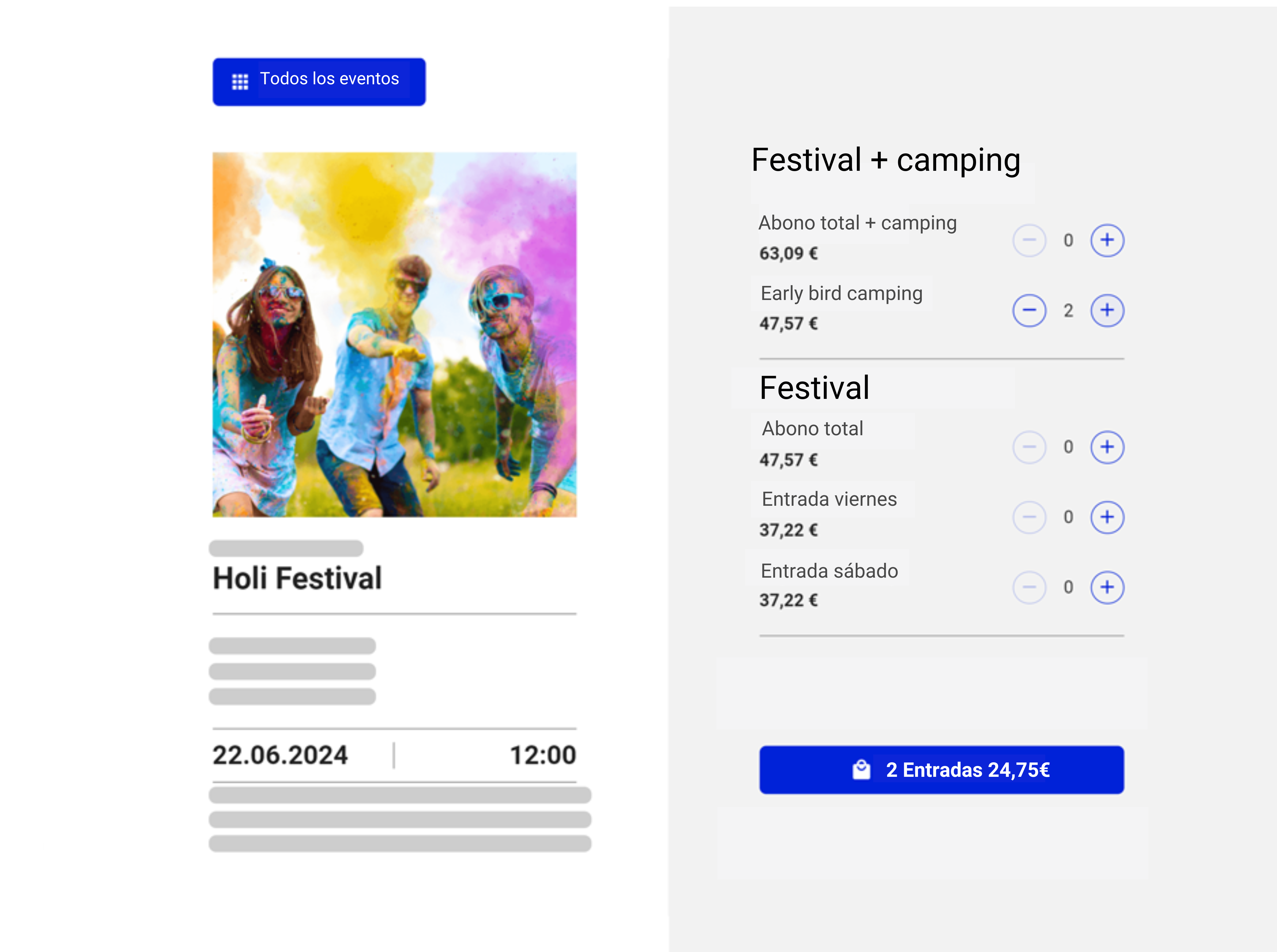 Combina varios eventos diarios en un paquete y véndelo como un abono de fin de semana o de festival. De este modo, tendrás control total sobre el precio de tus entradas.